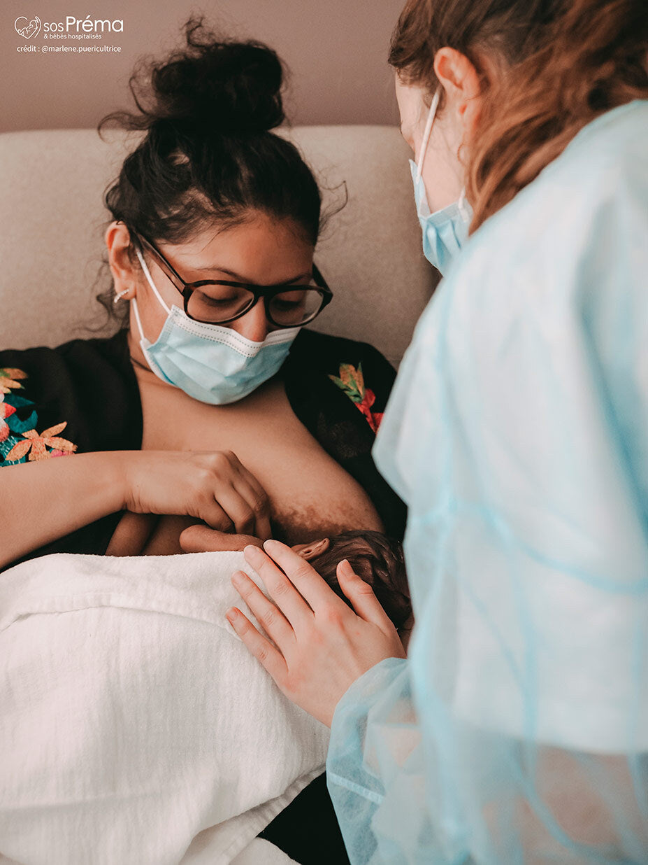 Breastfeeding a premature baby is possible, but the initiation of breastfeeding will be different from that of a full-term baby. Indeed, the premature baby may not always be able to latch, and the mother may need to express her milk, which can be challenging. Incredible teams support mothers whose babies are hospitalized in neonatology. Lactation consultants, pediatric nurses, and midwives assist mothers in their breastfeeding journey while respecting their free choice. Skin-to-skin contact is one of the recommended strategies to support milk production. During or after skin-to-skin, milk expression will be facilitated. The baby will be able to breastfeed directly when capable.